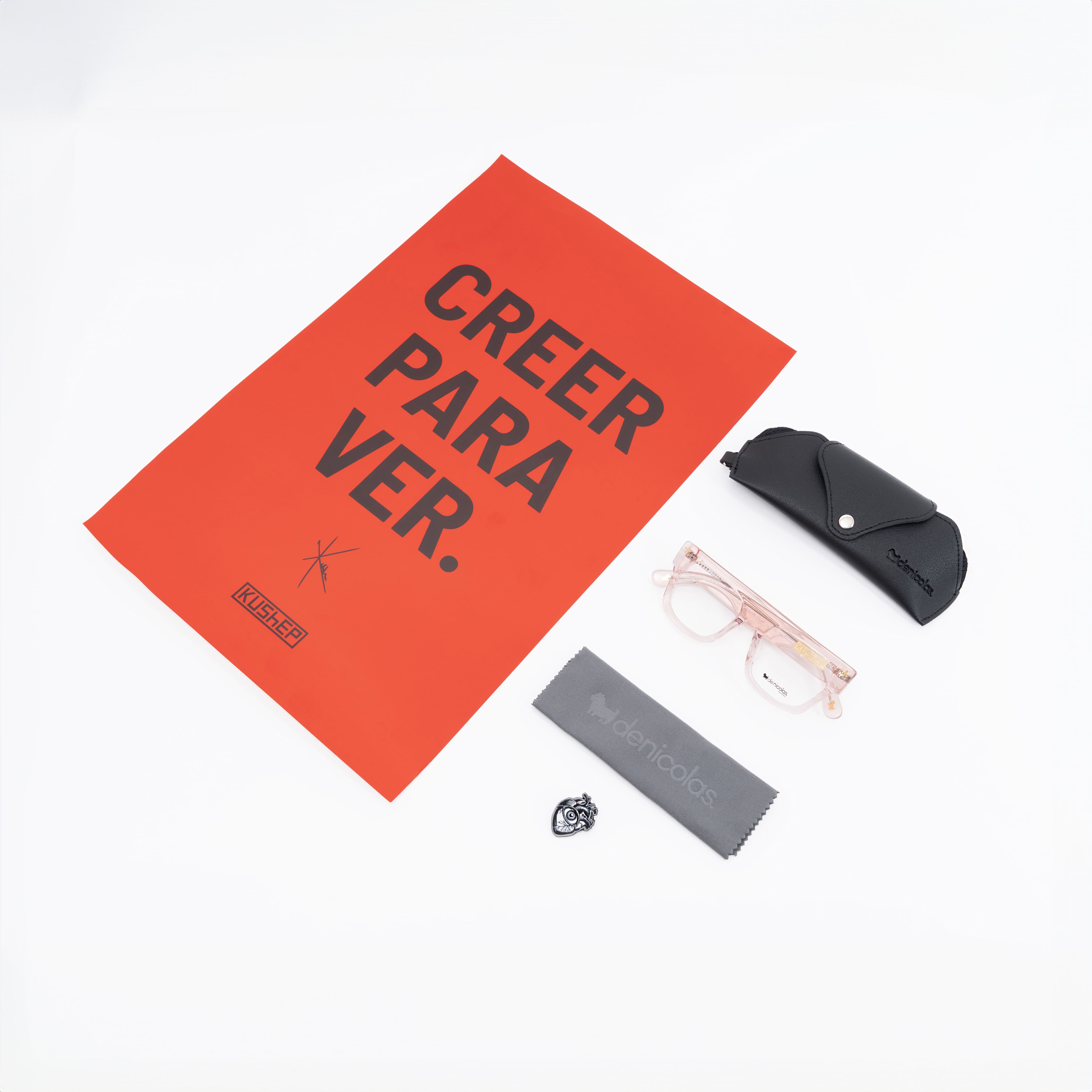 Al frente de los lentes encontrarás dos signos de + símbolo del mensaje que ha guiado a Kush desde el inicio de su proyecto;